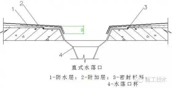 19 水落口及水落管——直式水落口的防水构造屋面直式水落口周围半径500mm范围内坡度不应小于5%,水落口面层排砖整齐、勾缝光滑平整、水落口处无积水现象、水箅子起落灵活,整体达到最佳观感质量。水落口杯与基层接触处应留宽20mm、深20mm凹槽,嵌密封材料。