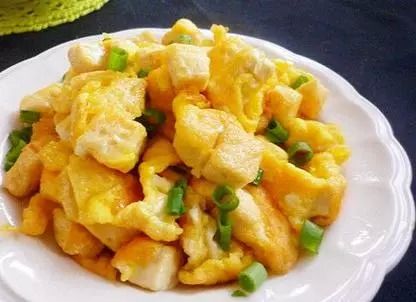 主料:北豆腐200g、鸡蛋3个辅料:食盐适量、小葱适量、食用油适量