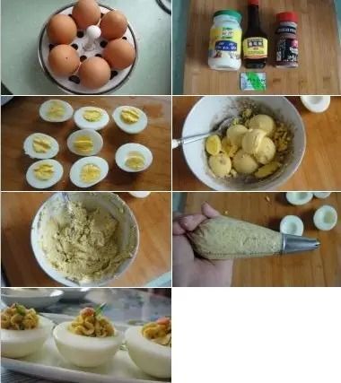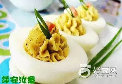 主料:鸡蛋4个辅料:蛋黄酱15g、寿司醋5g、芥末酱5g、黑胡椒粉1.5g、盐适量、葱适量(装饰)、香肠粒适量(装饰)