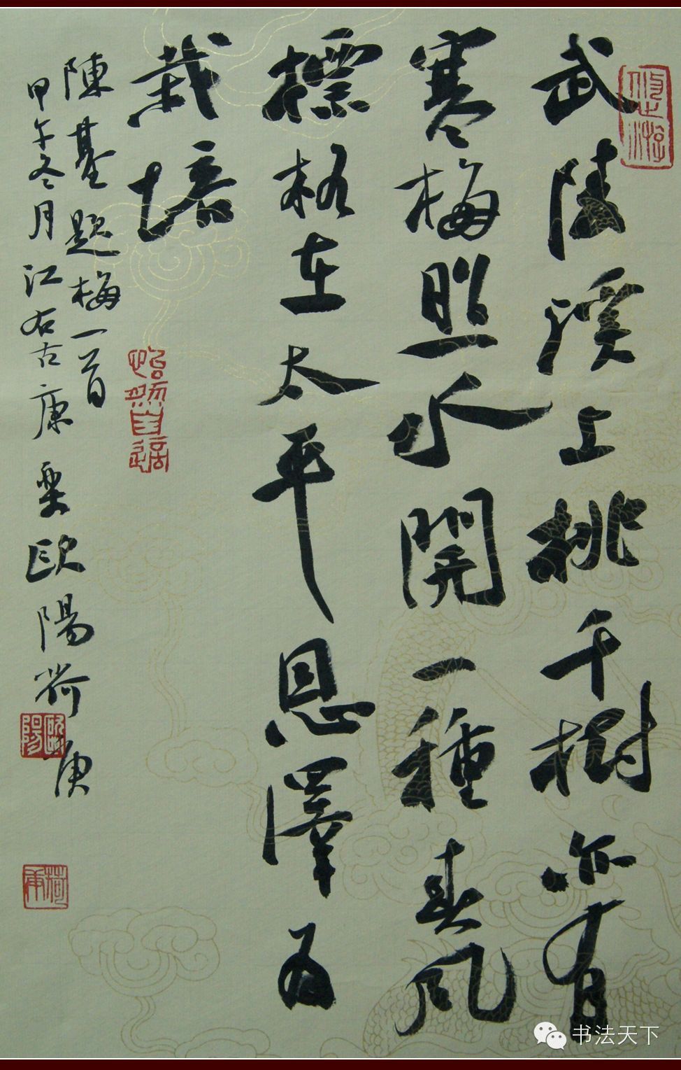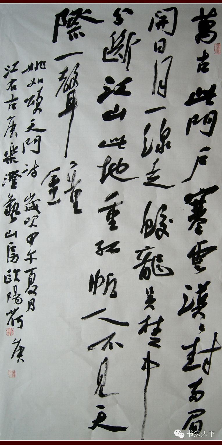 在当今书坛,欧阳荷庚无疑是一匹黑马。仅2013年在国展中获奖、入展次数竟达10多次。如今,书法入国展意味着被国家级专业权威机构认可,往往成为书法人创作的一种共同追求。全国高手林立,一般人入展一次都很艰难,而欧阳荷庚却20多次入展,的确令人刮目相看。