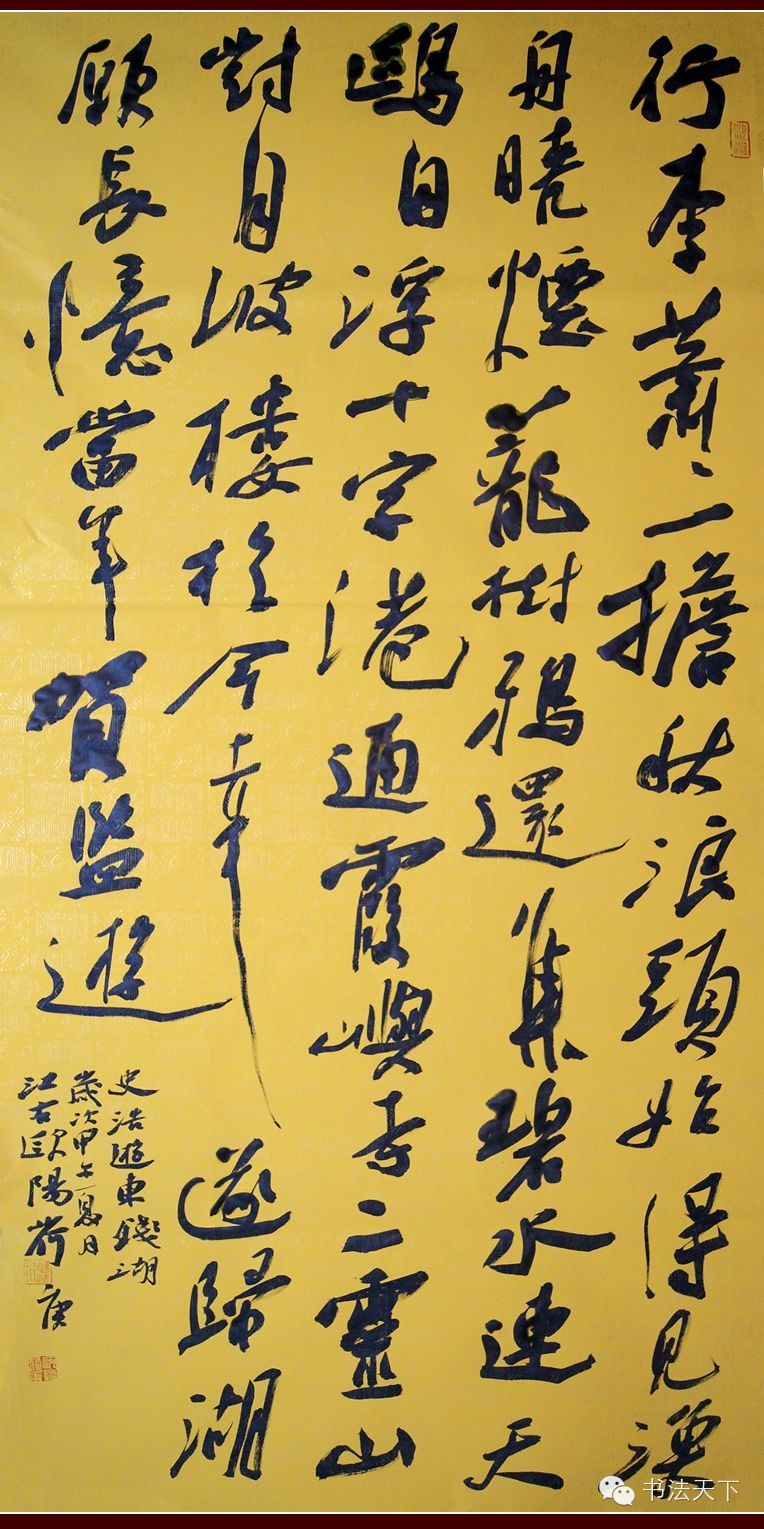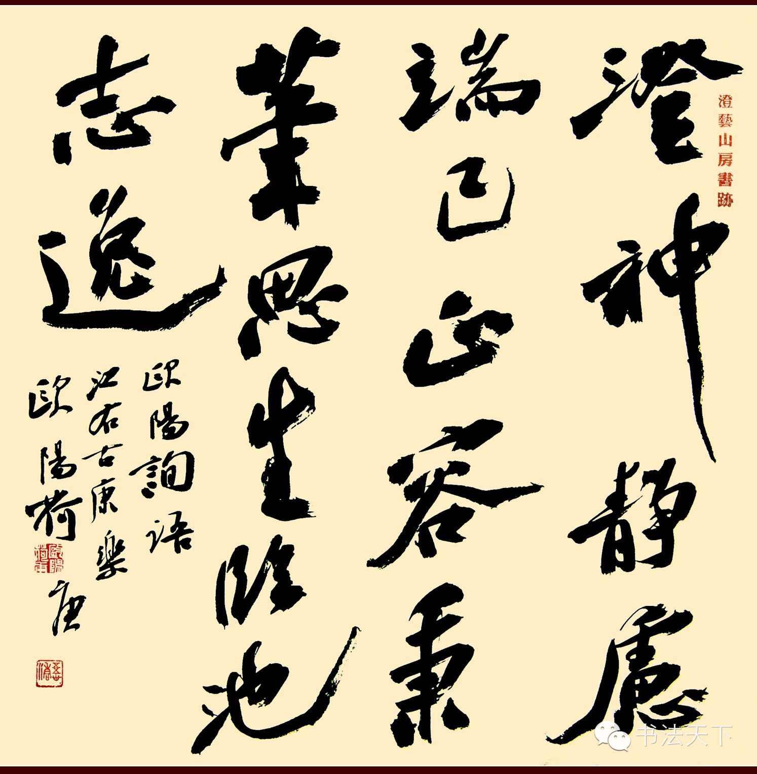 综观先生之书,以二王为基,借东坡之意,得鲁公之鸿,藉自身之养,形成自家风貌,于碑帖之学中寻找三昧,使其书艺之本质,亦传统亦现代,超世又脱世。若假以时日,当可比肩古人,也不足为怪也。