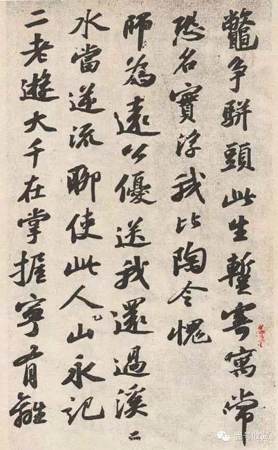 黄庭坚认为他的字学的是东晋的王濛,书法奇古,像晋宋间人的笔墨,又说他的书法多率意而作,本不求工而萧散简远,神采飞扬,好比高人胜士,虽然敝衣败履,但走在大车驷马之间,而目光炯炯,总与平常人不同。