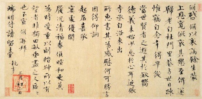 苏洵《陈元实夜来帖》约1047(庆历七年)纸本,34.5x50.9cm 台北故宫博物院藏