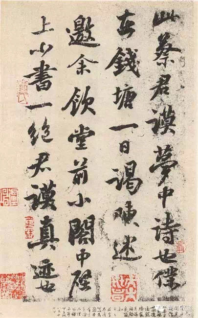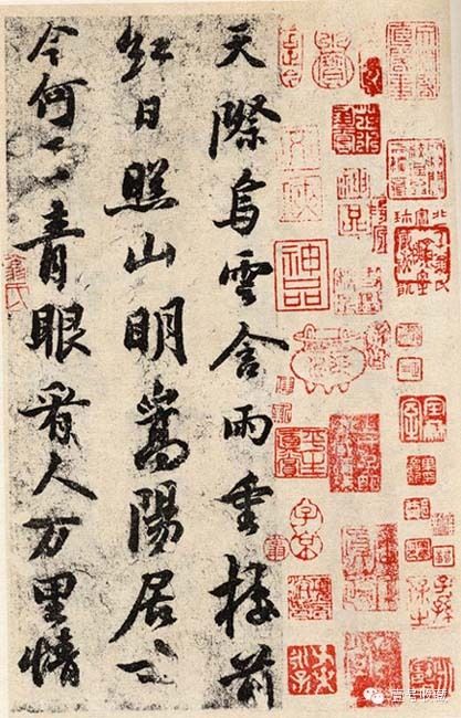《天际乌云帖》,苏轼书蔡襄诗,行书,真迹曾由明代项元汴收藏,清归翁方纲,有翁氏题跋。