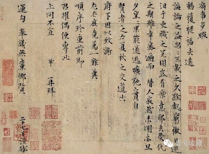 此帖全文:局事多暇。动履禔福。去远海诲之益。忽忽三载之久。跧处穷徼。日迷汨于吏职之冗。固岂有乐意耶。去受代之期。难幸密迩。而替人寂然未闻。亦旦夕望望。果能遂逃旷弛。实自贤者之力。夏秋之交。道出府下。因以致谢左右。庶竟万一。余冀顺序珍重。前即召擢。偶便专此上问。不宜。巩再拜。运勾奉议无党乡贤。二十七日。谨启。印文:曾巩再拜。此帖为曾巩在通判越时任上所书信牍,时间应在熙宁十年(1077年)之前,曾巩约50余岁,该书法结字修长,笔划清劲,为曾巩存世罕见的墨迹。