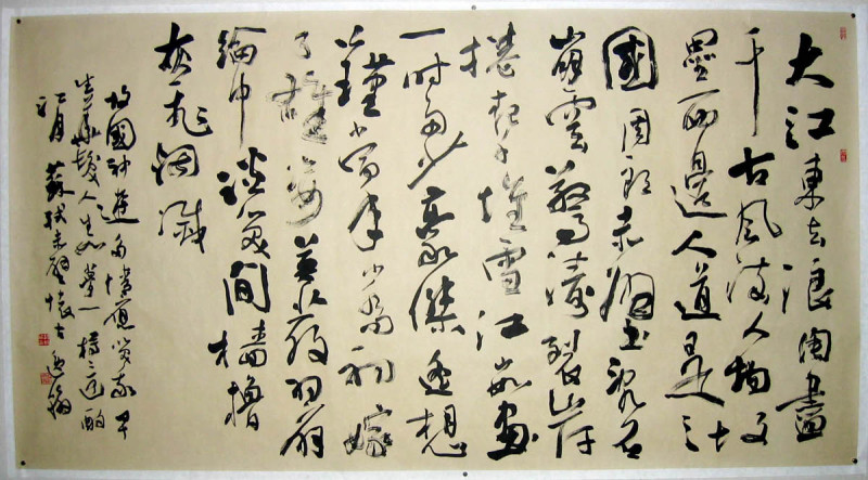 怀古的重要一环,是怎样把今和古联系起来。苏轼望着波祷滚滚的长江,想到自古以来那些才华出众的人物都已随同时间流逝而消失,犹如被源源而来的浪涛从历史上冲洗掉了一样。于是,他用“浪淘尽”三个字,把眼前的长江和历史上的人物巧妙地联系起来,在这种自然而又形象的联想中,表现他对历史人物的怀念。大江即长江。这里用“大江”,除去由于声韵的要求外,也显得更有气魄。“千古”,指久远的年代。