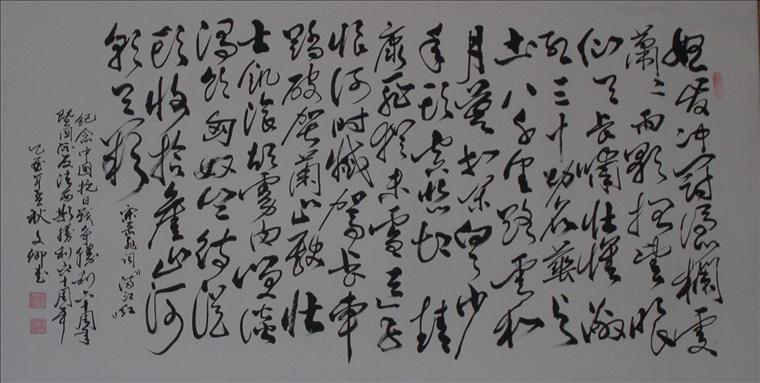 最后二行让人有一种仿佛亲眼见到诗人伫立于娄山关之巅,遥望万里祖国壮丽江山之英姿。他看见了如海的青山,如血的夕阳,画卷之美正符合苍凉沉雄的大写意之境界,而这种大写意之境界正是汉风众美之中一类。李白《忆秦娥》有“西风残照,汉家陵阙。”近人王国维在《人间词话》中评曰:“寥寥八字,遂关千年登临口。”而毛主席这最后二行博大苍茫之气与李白有同气相呼应之感,同时毛主席这二行还更多一些英雄之气与壮丽之气。