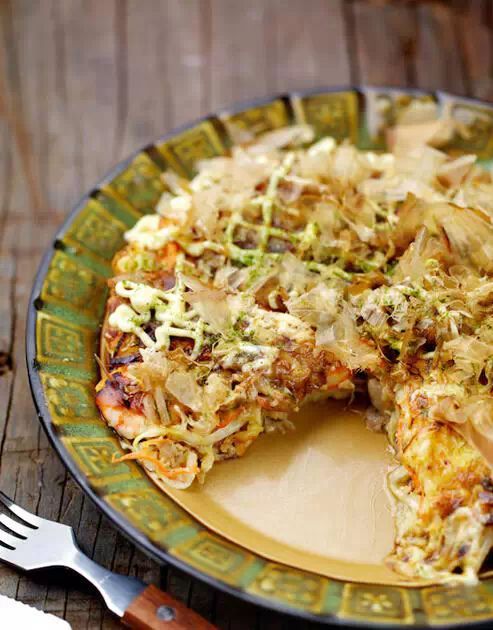8、出锅淋好烧酱和美奶滋,缀以鲣鱼花和海苔粉即可享用。