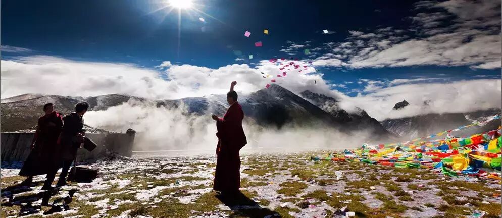 4、渲染气氛,好的前景可以起到烘托主体的作用。例如大荒漠雪山前有一堆动物的骨架或者是漂亮的风幡、尼玛堆。