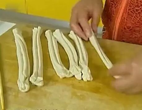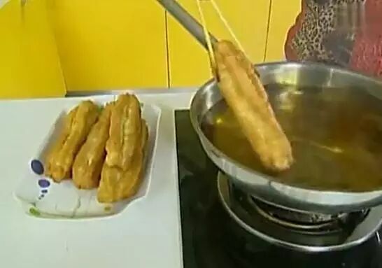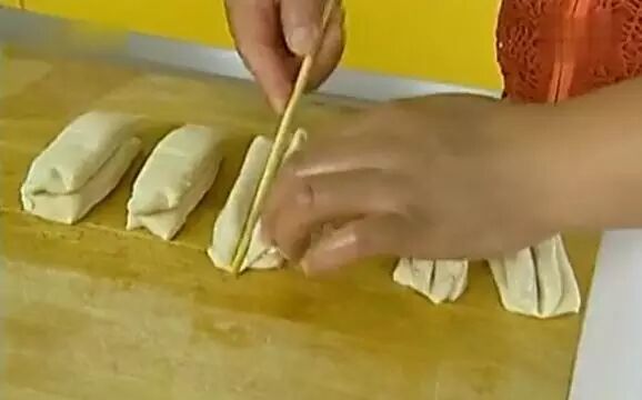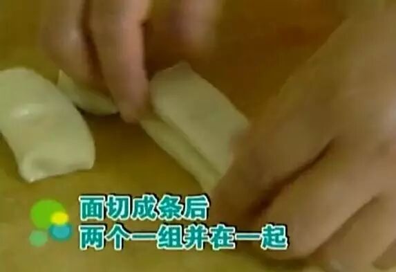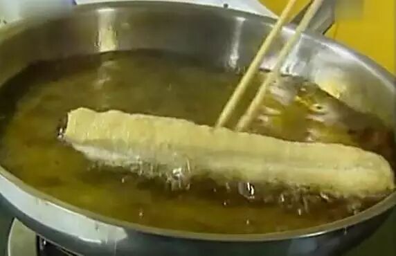 窍门四:双手轻捏两头时,应将两头的中间轻轻捏紧,在炸的时候两头也不能分离 这时油温也差不多了就可以下锅了