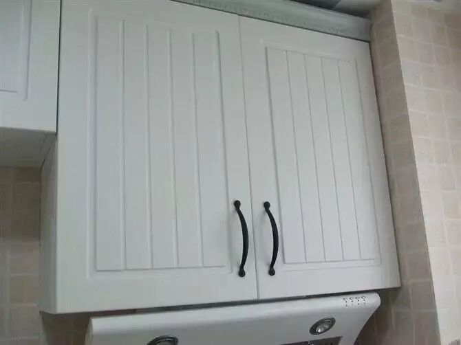 我选的橱柜面板是吸塑的,选择的理由:便宜+可以造型。