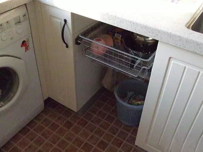 垃圾桶兼放摸布,使用又好看。关键是即增加了台面的空间,又省了一组地柜的钱,小厨房的同学可以多