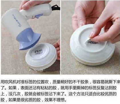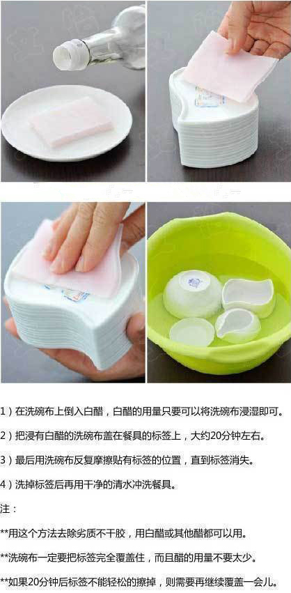 10、餐具上的不干胶贴没法揭干净?