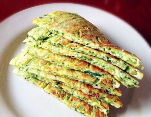 ②平底锅烧热后刷少许食油,取适量黄瓜鸡蛋面糊糊倒入锅内,两面都煎至黄金后出锅即可;