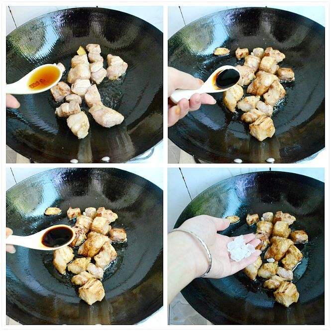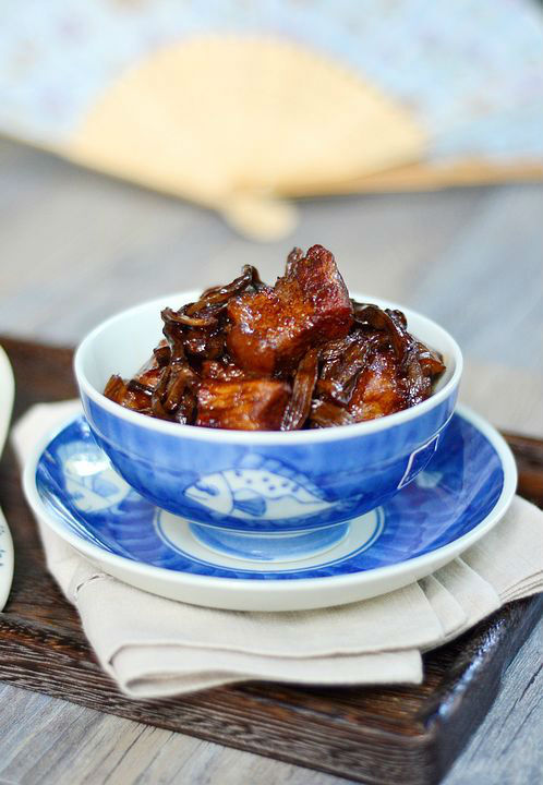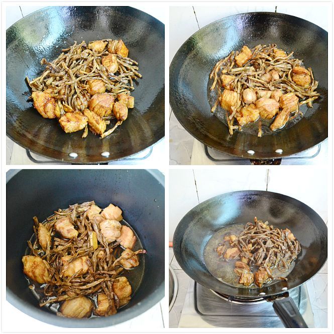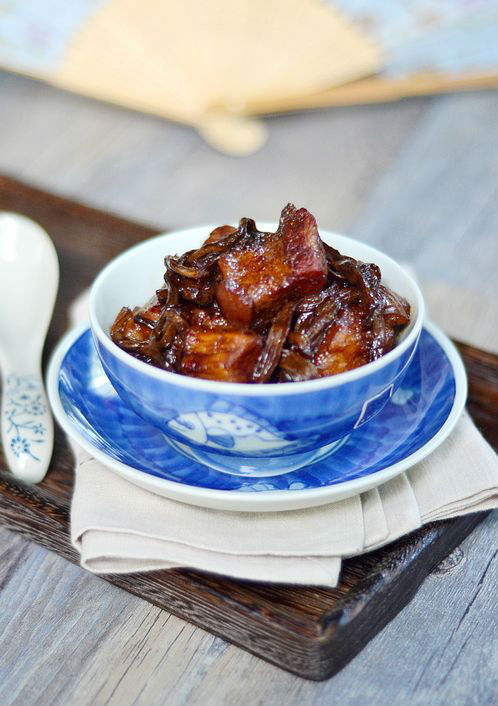 材料:豆角干一把,五花肉一条,姜2片。 调料:生抽、老抽、冰糖、料酒、油各适量。 做法:1、豆角干提前一晚用水泡软,沥干水份切成长段备用。 2、五花肉洗净切成大块,姜去皮切片备用。 3、锅内放入一点点的油,烧热,加入姜片爆香,再放入五花肉爆至微金黄。 4、调入适量的生抽、老抽、冰糖、料酒,再加入豆角干翻炒均匀,再加入四汤勺料酒和没过肉块的水。 5、将所有的材料倒进电高压锅内,压20分钟至肉块软烂。 6、将压好的材料重新倒回到锅内,中火烧至汤汁浓稠,这期间可以试一下味道,然后按需求调入适量的糖或生抽来调整适合自己的口味。 7、收浓汁后取出装盘食用。 注意:1、五花肉买三分瘦,七分肥的好吃,肥肉煮到入口即化,小朋友最喜欢。 2、要是不用高压锅的,就要加大水量,小火炖煮不少于40分钟。http://。 3、最后回锅的时候,可以适当的调点咸甜度呢,涛妈就有这样的习惯哦。 |
