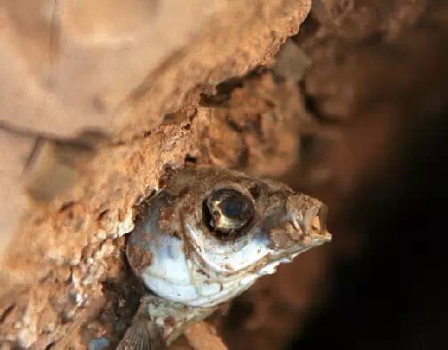 有一条叫“黑玛”的杜兹肺鱼就不幸遇见了这样的事情:当一个农民挤干了它的水分后,便将它抛弃在河岸上。无遮无挡的黑玛被太阳晒得直冒油,生命垂危。好在它拼命地蹦呀、跳呀,最后终于跳回到了之前的淤泥中,重新捡回了一条命。
