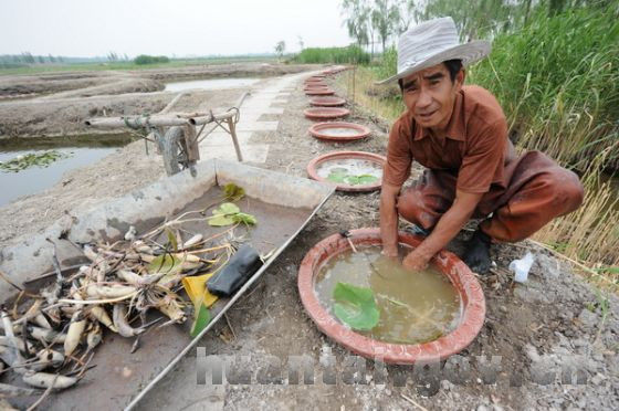 等土稍微干了,就可以适当加点水滋润一下泥土,这时候,藕吸收水份特别的好!完全和淤泥融合。