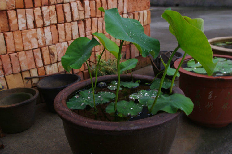 栽培容器:釉盆、瓷盆、紫砂盆是荷花的理想用盆,但这类盆一般都留有底孔,因此要用水泥黄砂将其堵死。花盆的口径,碗莲要选高20公分,直径20公分左右直径的盆。总之,盆缸大些,开花既多又好。