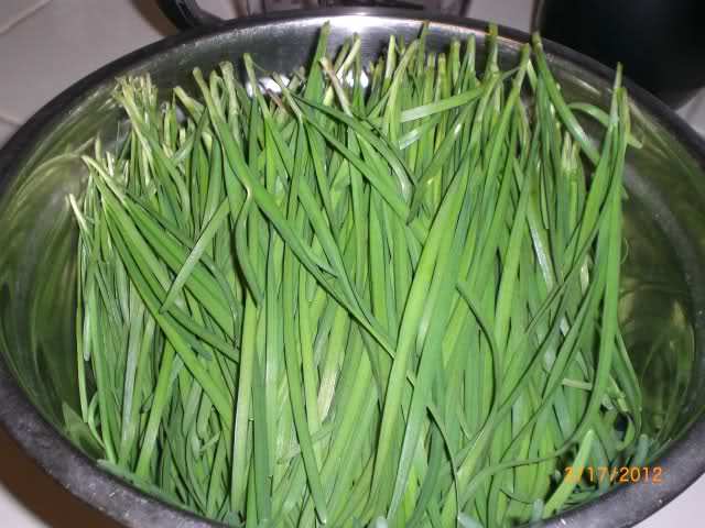 这头茬韭菜该割了,老公说想吃盒子,那就烙盒子。割了三分之一,有这么多;