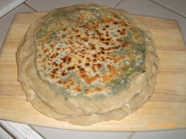 自从淘汰了不粘锅,这只刚买的薄型铁锅就是煎炒炸的唯一,今天就来用它烙盒子。小时候外婆家的灶台上那口大铁锅烙出的盒子的美味又依稀飘来。就用外婆的方法来烙大盒子。烙了五张盒子外加一张小儿子喜欢的葱油饼;