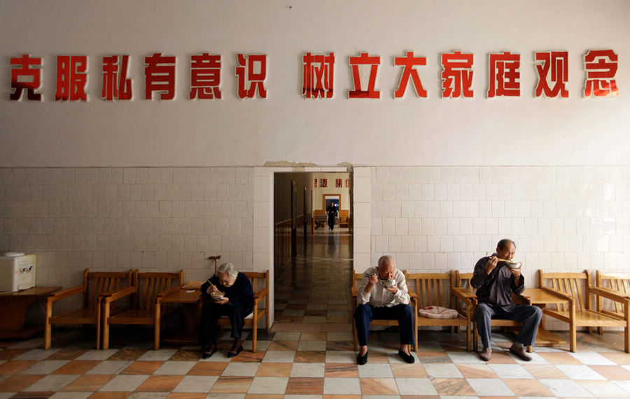 2012年9月25日,老人们在南街村的一家疗养院中吃午餐。