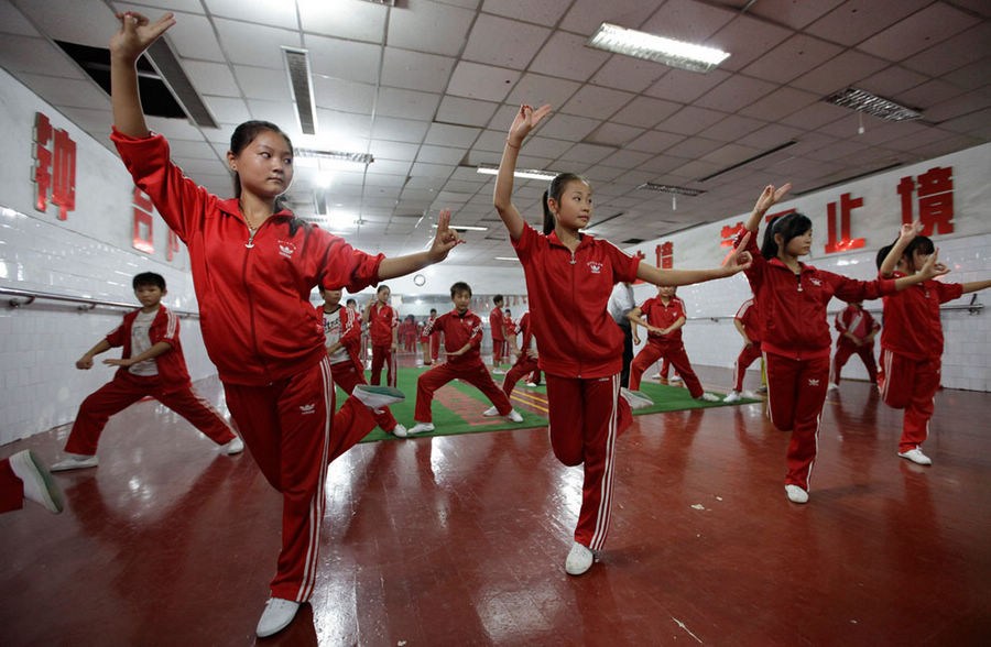2012年9月24日,南街村,艺校的学生们在练习跳舞。
