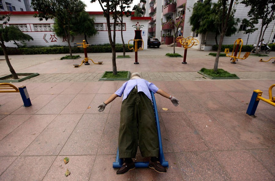 2012年9月24日,一位居民在南街村社区活动中心锻炼身体。