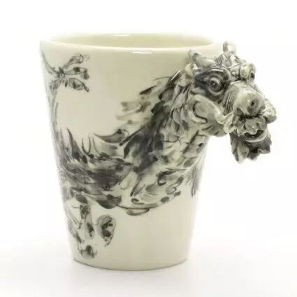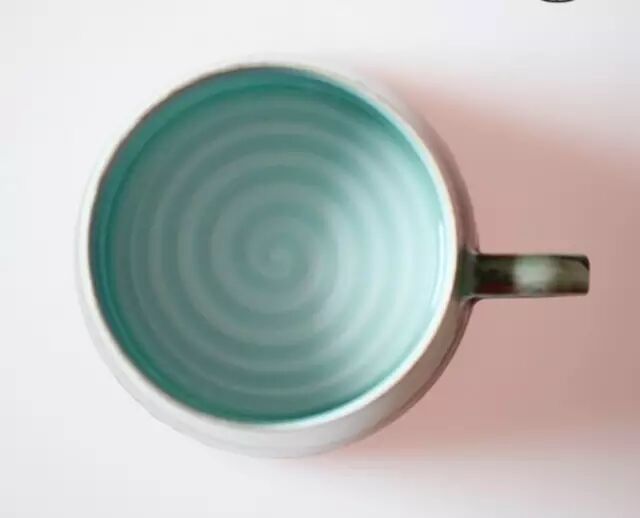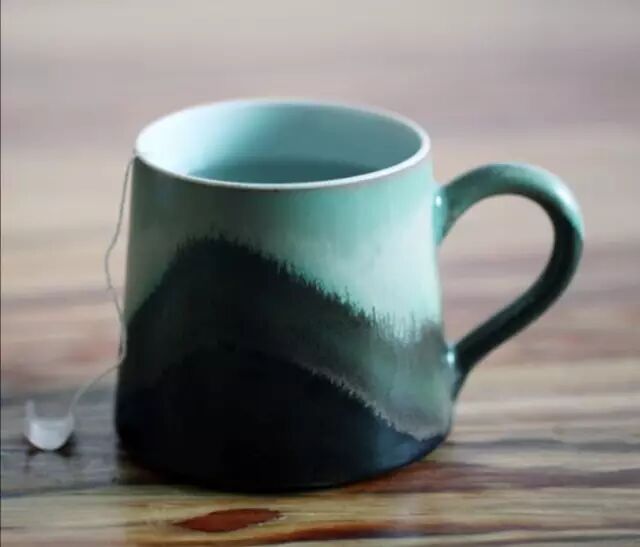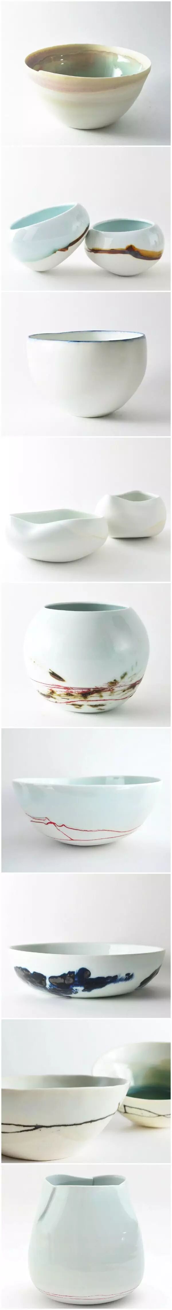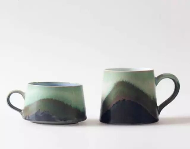 随机型的釉彩在瓷壁上晕染,像是水墨的山水