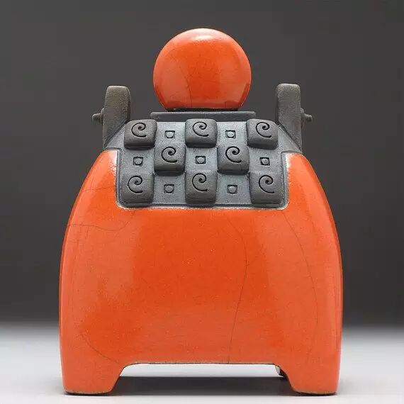 其灵感来源原始的时期的尖底壶,不同于原始的陶罐,而是配上白瓷,以一种新颖的姿态展现世人。