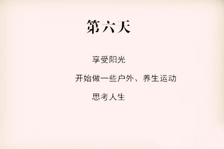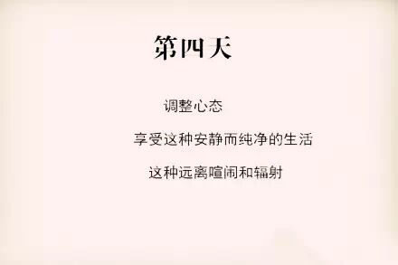 第四天应该慢慢适应了这种安静的生活了,或许不再担心一些所谓的担心了,接下来的几天,也就慢慢享受自己给自己创造的纯净的生活了。