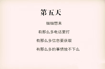 这第一天的情况,估计不会存在,因为就算手机不关机,一整天也不见有一个电话。(不过有个定律叫:墨菲定律,说的是怕什么来什么,你越不希望它发生它就越可能会发生,说不定就在关机的这个星期里所有人都给你打电话了)