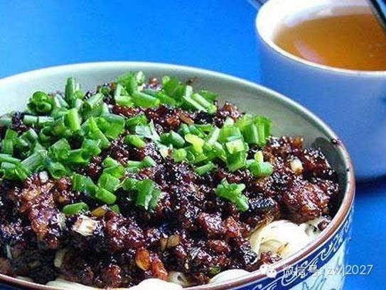 7、将煮好的面条沥干水分,放放入碗内,然后浇上炒好的杂酱。搅拌均匀即可食用。