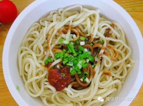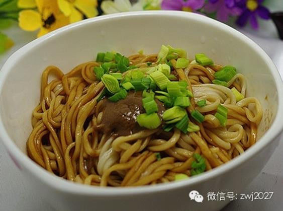 材料: 切面150克,麻酱一大匙,葱花一中匙,精盐半小匙,