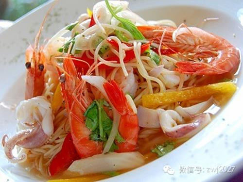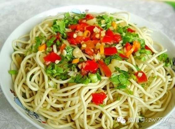 5)沥干水分。6)倒入准备好的餐盘中,刷油,快速抖散面条,以免沾黏。