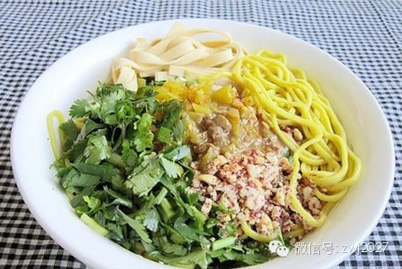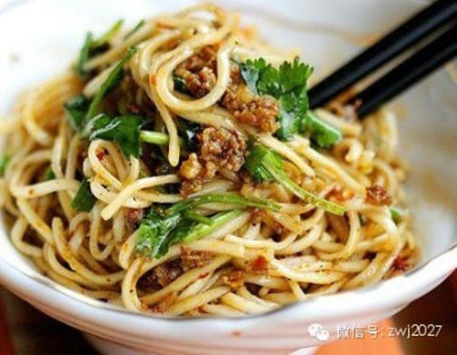 食材:碱面500g、榨菜100g、辣椒油适量、盐适量、香葱20g、香菜20g、花生酱100g、香油少许、味精1g、熟花生末20g、胡椒粉2g、醋2g、千张50g