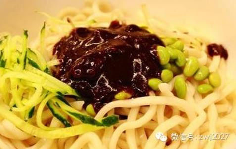 5、最后把绿豆芽和黄瓜丝夹到面条上再盛入1勺炒好的炸酱大蒜末,再倒少许醋拌匀即可。添加小资美食家QQ1578851274,空间每天更新精彩美食日志。