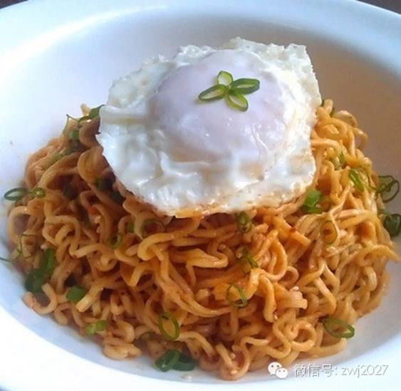 4)水再开之后就可以把面捞起来装盘,加入上述所说材料拌匀就可以开吃啦