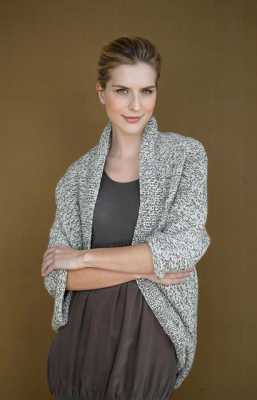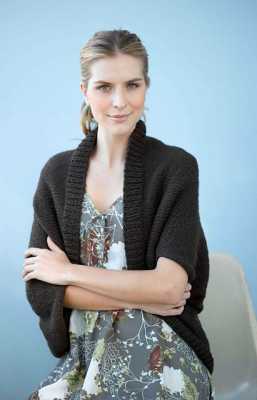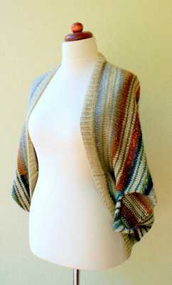 shrug是欧美会手工编织的女人最喜欢织的一种简易的衣物。一般是从一边的袖口往另外一边袖口织,主要是遮住肩膀,袖子可长可短,针法可以是实心的也可以是蕾丝镂空的,可以用纯色线、花色线、段染线甚至各种颜色配成条纹图案。其中最简单的一种织法就是一个长方形,把两边缝合之后“挂”在身上。