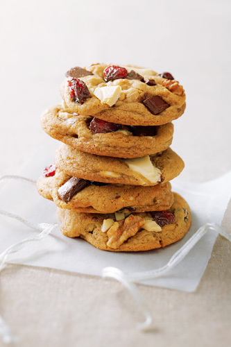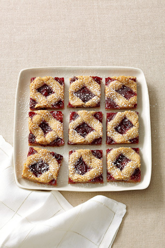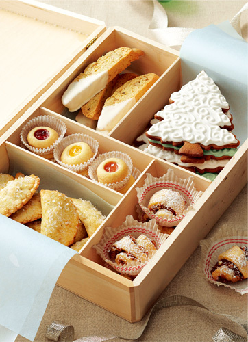 尊享无限量精美信纸!立即开通黄钻 夏天提前学习8款点心制作 ![]() 1.意大利核桃脆饼 原料:2杯通用面粉;1.5茶匙泡打粉;1/4茶匙盐;1/4杯黄油(1块)软化;1/3杯砂糖;1/3杯黄糖;2个鸡蛋;1茶匙香草精;1杯核桃烤过捣碎;12盎司白巧克力融化。 做法: 1. 预热至180摄氏度,在烤盘中铺烘焙纸。 2. 在蜡纸上将面粉、泡打粉和盐混合。 3. 取大碗,以中速将黄油和糖搅拌成粘稠状。加入鸡蛋,每次一个,每次打入后都充分搅拌。添加香草精,缓慢搅拌,渐渐加入面粉混合物,搅拌均匀,放入核桃。 4. 把面团切成两份,每块面团做成1.5英寸宽的条状,放在烤盘上,之间相隔3英寸。 5. 烤制30分钟呈金黄色,将烤盘放在金属架上晾5分钟。取出放在案板上,用锯齿刀斜切成1/2英寸厚片,平放在烤盘中烤20-25分钟至金黄酥脆,放金属架上晾凉。 7. 脆饼蘸上巧克力酱,放蜡纸上等待凝固。 2.珍果小馅饼 原料:1个蛋黄;1/2茶匙香草精;1.5杯通用面粉;1/2杯糖;1/4茶匙盐;1/2茶匙新鲜柠檬皮;3/4杯冷黄油;1/2杯果酱。 做法: 1. 取小碗将蛋黄和香草打碎,在食品处理机中将面粉、糖和盐充分混合。加柠檬皮和黄油继续混合至形成粗粒。加入混合了香草精的蛋黄,搅拌至潮湿大颗粒状。 2. 揉面团,拍平,按成3/4英寸厚的方面团,用保鲜膜包紧放入冰箱2小时到3天。 3. 去保鲜膜,将面团横切成1/2英寸宽长条,竖切成同样宽度小方块。放15分钟使面团变软,在烘焙盘上放入烘焙纸。 4. 方形面块揉成球放在烘焙盘上,用手指或木勺尾部在中间按出个小坑。码放时面团之间相距1英寸。冷冻15分钟直到面团变硬。 5. 烤箱预热至180摄氏度。 6. 如果酱中有籽或果粒,用细筛弄碎。放入密封塑料袋,在一个角剪出一个小口。 7. 将果酱挤到面团上按出的小坑里。烤12-15分钟到金黄色,放金属架上晾凉。 3.无花果月牙饼 面团原料:2.75杯通用面粉;多备些面粉;1/2茶匙盐;1/4茶匙泡打粉;2个鸡蛋;1杯砂糖;1/2杯黄油或1块人造黄油软化;2茶匙鲜奶油或淡奶油;1茶匙香草精。 无花果馅料:1个橙子;5盎司黑无花果干;1/2杯核桃;1/4杯葡萄干;1/4杯蜂蜜;1.5匙肉桂粉;1个鸡蛋;1/4杯白色装饰用糖。 做法: 1.面团:蜡纸上将面粉、盐和泡打粉拌匀。 2.取大碗中等速度搅拌鸡蛋、糖和黄油至粘稠,加奶油和香草精搅拌,倒入面粉混合物至搅匀。将面团分成4份在圆盘上压平,保鲜膜包好圆盘,放入冰箱2个小时至3天。 3. 馅料:削1/2茶匙橙皮,榨3大汤匙橙汁。在食物处理机中将橙皮、橙汁、无花果、葡萄干、蜂蜜和肉桂粉充分研磨。 4. 将烤箱预热至180摄氏度,在两个大烤盘中涂上少许油。在杯中轻轻地打散鸡蛋。 5. 在撒有干面粉的面板上将面饼压至1/8英寸厚,用蘸过面粉的直径2.5英寸花边饼干模具切出面饼,放入冰箱冷藏。将面饼间隔1英寸放置在准备好的烤盘上。面饼上放入馅料,将面皮对折,在表面刷上蛋液,撒糖。 6. 烤15分钟至表面金黄,在金属架上晾凉。 4.苹果派酥卷 酥卷面团:1杯黄油软化;1盒奶油芝士,软化;2杯通用面粉;1/2茶匙盐。 苹果-核桃馅料 苹果干1.5杯切碎;1/2杯核桃,切碎;1/4杯黄糖;调味砂糖;1杯砂糖;2茶匙肉桂粉;3/4杯苹果冻;糖粉。 做法: 1. 面团:取大碗,以中等速度将黄油、奶油芝士搅拌至粘稠。放慢搅拌速度,逐渐加入面粉和盐,直至混合。将搅好的面团平均分成四份,把每份面团分别在圆盘上压平,用保鲜膜将四个圆盘包好,放入冰箱至少4小时或一夜,直到面团柔韧到适合做成面卷。 2. 馅料:取中碗将苹果、核桃和黄糖混合。 3. 在小碗中将砂糖和肉桂粉混合。 4. 预热至180摄氏度,在烤盘上铺好烘焙纸。 5. 在台面上撒上砂糖。将面饼放在铺好的砂糖上,翻过来再沾另一面。将面饼压成直径10英寸的圆饼,翻几次,在两面撒两勺糖。 6. 在面饼上浇三大勺苹果冻,撒1/2杯馅料,留1/2左右的边。将面饼切成16等份的楔形,从宽边开始卷成蛋糕卷,间隔1英寸摆在烤盘上,固定的一端朝下。 7. 烤30分钟至金黄,烤熟在金属架上晾凉。 5.浅色花儿饼干 原料: 2.25杯通用面粉;1/2茶匙泡打粉;1/2茶匙盐;1杯黄油或人造黄油(2块),软化;1/2杯糖;1个打鸡蛋;1茶匙香草精;1茶匙杏仁精;装饰用的糖果或糖霜。 做法: 1. 预热至180摄氏度。 2. 在蜡纸上将面粉、泡打粉与食盐混合。 3. 取一大碗,以中等速度将黄油、糖一起搅拌,直至颜色发白呈粘稠状。加入鸡蛋和香草精及杏仁精,缓慢搅拌,逐渐加入面粉与泡打粉的混合物,搅拌至混合均匀。 4. 将面团放入饼干模具或裱花袋中,在冷冻过的烤盘上压出或挤出想要的形状。如果想添加装饰糖果,就在放入烤箱前装饰好。 5. 将饼干烤制10-20分钟,直到边缘变成浅黄色,将烤盘放置在金属架上冷却2分钟,然后将饼干移至金属架完全晾凉。按照前面的操作制作剩下的面团。如果有需要可用糖霜装饰,然后静置等待糖霜变干。放在密封罐内可保存一周,放入冰箱可保存1个月。 ![]() 6.蔓越莓巧克力曲奇饼 原料: 2.5杯通用面粉;1 茶匙烘焙苏打粉;1/2茶匙盐;3/4杯黄油或人造黄油1.5块,软化;1/4杯黄糖;1/4.杯糖粉;3茶匙玉米糖浆;2个大鸡蛋;2茶匙香草精;1.25杯核桃,烤过捣碎;1杯蔓越莓干;4盎司白巧克力,切碎;4盎司半甜巧克力。 做法: 1. 在烤箱上下三分之一处放上烤架。预热烤箱至200摄氏度。在3个烤盘中垫上烘焙纸。 2.在蜡纸上将面粉、烘焙苏打和盐混合,放置在一旁。取一大碗,以中等速度将黄油、糖和玉米糖浆混合至粘稠状,使鸡蛋和香草精充分混合。放慢搅