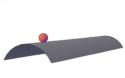 为什么左边的小球稳定呢?因为它的能量最小。它处在所有可能的位置中最低的那个位置,所以重力势能最小。一旦它被扰动,只可能被扰动到重力势能更高的地方,因为没有比它现在的位置重力势能更低的地方。这样,只要外界干扰一去除,在重力的作用下,小球就会自动回到原来的平衡位置,所以我们说它是稳定的。它不需要任何外部能量,单靠自己的重力就能保持在现在这个位置。