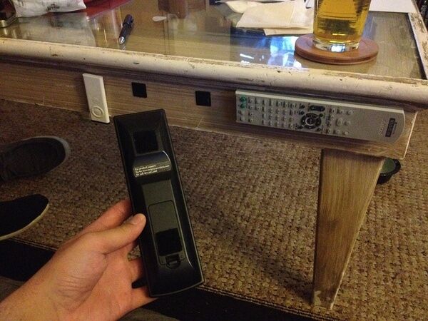 看电视发现遥控器找不到了,在沙发里里外外翻来翻去很是头疼脑热?用尼龙粘扣把遥控器放在茶几边上,用的时候找得到。