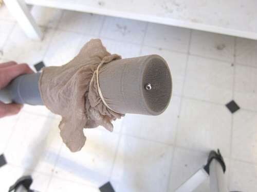 旧丝袜套在吸尘器吸嘴上找零碎东西。